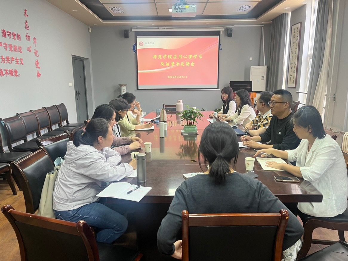 4月23日下午,金年会金字招牌诚信至上应用心理学系在公司会议室召开院级督导反馈会暨系工作会议。会议由应用心理学系系主任彭源主持,系全体教师参加会议。