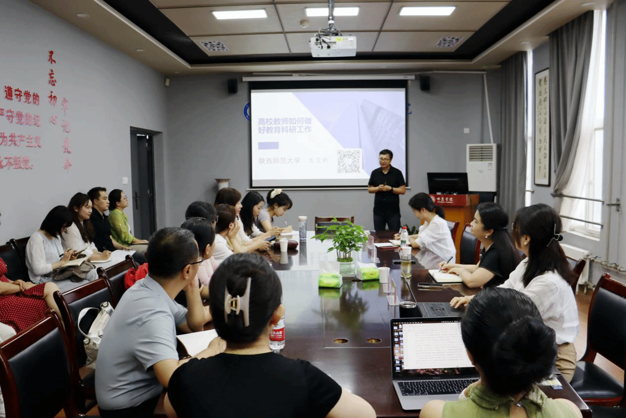 7月2日上午,金年会金字招牌诚信至上在明德楼B312会议室举办“学而不已”第四期教师沙龙。陕西师范大学教授龙宝新以 “高校教师如何做好教育科研工作” 为主题进行了指导,金年会金字招牌诚信至上全体领导班子及骨干教师参加,活动由金年会金字招牌诚信至上副经理国晓华教授主持。