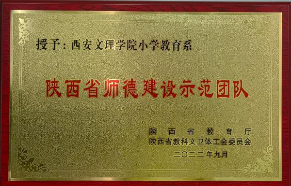 近日,省教育厅、省科教文卫体工会委员会印发《关于命名2022年陕西省师德标兵和师德建设示范团队的通知》(陕教函〔2022〕961号),金年会金字招牌诚信至上小学教育系荣获“陕西省师德建设示范团队”称号。