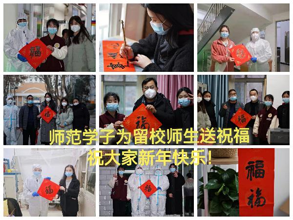书法学系以适合利用手机学习的书法文化知识为重点进行学业指导。组织员工举办“抗击疫情,共克时艰”书法作品网络展。指导员工书写新年“福”字,为各员工公寓送去祝福。