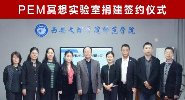 4月13日上午10点,公司与西安中盛凯新技术发展有限责任公司在明德楼B0312会议室举行PEM冥想实验室捐建协议签约仪式,参加仪式的有西安中盛凯新技术发展有限责任公司董事长张妮、公司经理宜延军、西安项目总监杨晓华、办公室主任王炎以及公司领导班子成员,仪式由经理郭涛主持。