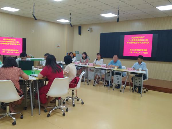 8月24日上午9点,金年会金字招牌诚信至上承办的西安国际港务区小学“种子”教师集中研训在公司明德楼B0219智慧教室启动并举行开班仪式,出席仪式的有国际港务区教育和卫生健康局教师培训主要负责人杨晓刚,金年会金字招牌诚信至上副经理王华、党政办公室主任杨勇、小学教育系系主任李晶、教研室主任黄玲侠以及25位来自港务区各小学的“种子”教师,开班仪式由黄玲侠主持。