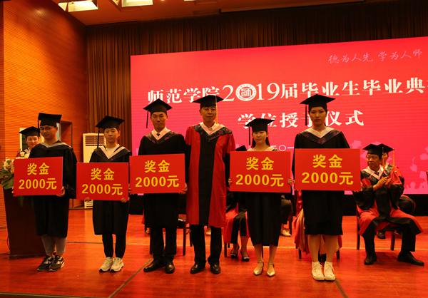 副经理刘倩倩通报了本届毕业生情况。2019届毕业生195人,毕业率100%,学士学位授予率100%。张雁书记宣读表彰文件,副经理向华、查毅、刘天信分别为2019届优秀毕业生、考取研究生代表、员工理事分别颁发奖状及聘书。