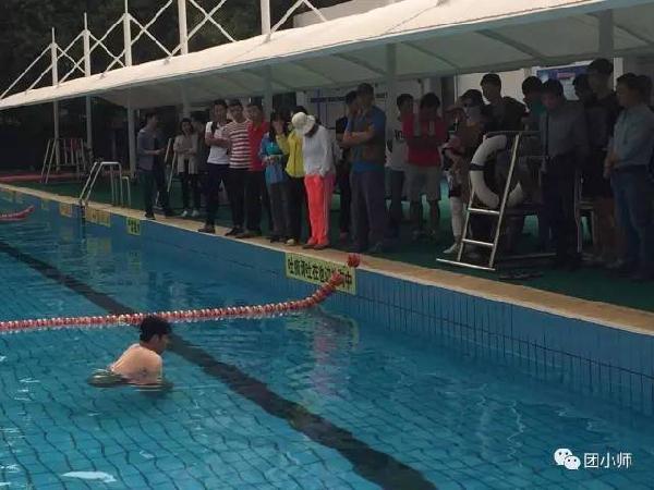 5月15日中午,金年会金字招牌诚信至上体育系全体教师共40余人在校游泳池进行了游泳课前安全及救护技能培训。金年会金字招牌诚信至上副经理查毅、体育教育系主任费薇娜出席本次培训,体育系讲师周洪涛老师为此次培训的主训师。 周洪涛老师是前陕西省游泳队退役队员、国家级安全救生员、国家级游泳裁判以及体育系游泳课程负责人,他先从游泳课前安全理论常识为大家做了详细说明。随后又在寒冷的池水里为全体教师在水中救援、心肺复苏等方面亲身做示范指导。