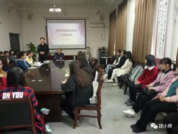 在座谈会上,从各个公司转来的员工首先介绍了自己前两周的学习、生活情况,将现存问题与上一级的学姐进行了交流,尤其是艺术类课程的学习,学姐给出了中肯的建议。辅导员何悦总结了大家的问题,以一名毕业学长学习钢琴的经历鼓励大家:从零开始,并非难事。随后,王晶老师对在座同学给予鼓励,鼓励大家好好学习,早日通过英语四、六级考试,学习好专业课,为未来就业、考研打下良好基础。座谈会最后,李昉副书记向同学们分享了一名小教员工的学习经历,希望大家好好利用公司、公司给同学们提供的各类优势资源,加强同学之间的交流,同时欢迎有想法的同学积极发挥自己的特长,利用现有平台,提升自己,学有所成。