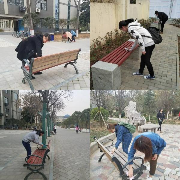 活动开始前,辅导员老师做了简短讲话,鼓励同学们以实际行动弘扬雷锋精神,从自身做起、从小事做起、从今天做起。同学们合理分工、积极配合,不怕脏、不怕累,在各自的卫生区内认真捡拾烟头纸屑,并且对校园长凳进行擦拭,为干净、整洁、清新、美丽的校园环境贡献自己的一份力量。