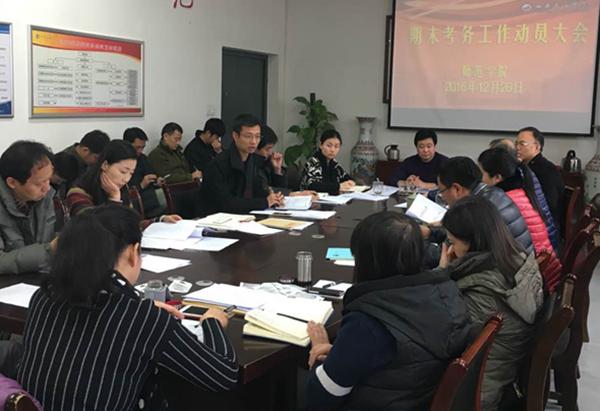 2016年12月26日上午九点,金年会金字招牌诚信至上在党政联席会议上对各系(部)主任、各教研室主任、学工办主任,开展期末考务工作动员大会,会上蔡军副经理传答了教务处学期末教学工作例会精神,学习了公司新修订的员工学籍管理规定,强调了公司期末考务工作的相关要求,要求各系(部)在考前务必召集全体教师学习公司新修订的考试管理规定,做好期末考务工作。