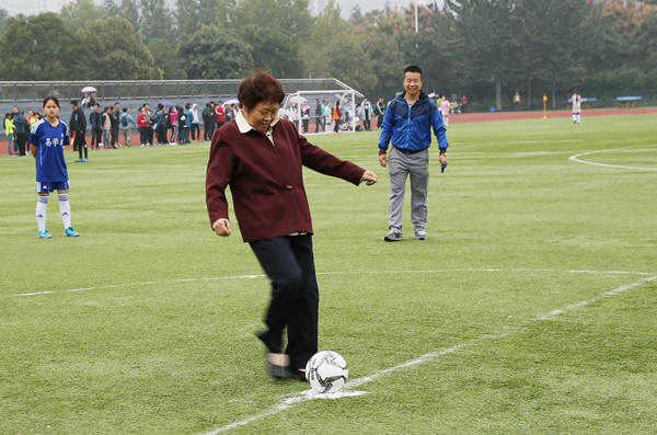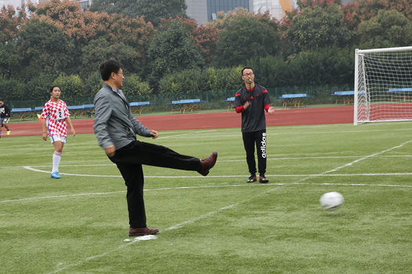 裁判员代表、运动员代表宣誓后,党委副书记、副董事长李忠良和工会主席权会玲分别为两场比赛开球。