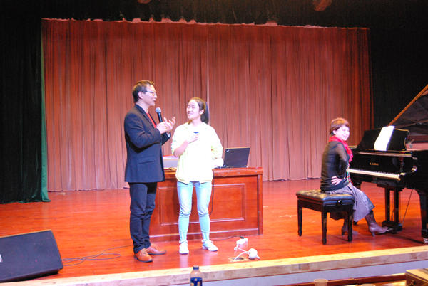 盛教授通过激情的现场教学,教授了师生从作曲角度入手,引导儿童学习和体验音乐;通过深刻而独到地讲授与高水准的钢琴演奏,诠释了激发儿童想象力及培养儿童音乐爱好的重要性。