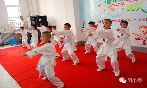 经开六小的孩子们也为嘉宾表演了他们精心准备的文艺节目。舞蹈社团的《快乐舞蹈》拉开了汇演序幕,英文歌曲独唱、《民族舞串烧》、跆拳道等表演赢得了热烈的掌声,还有别具一格的教师独唱、英语社团表演的英文歌曲、环保时装秀等精彩纷呈。孩子们用优美的舞姿,充满童真的笑脸赢得了在场观众的阵阵掌声,最后一年级一班孩子表演的《三字经》朗诵为文艺汇演画上了圆满的句号。