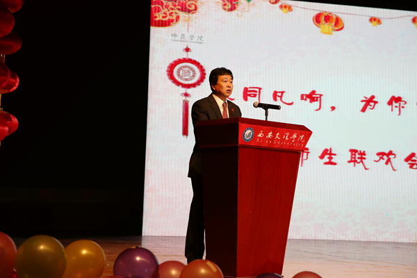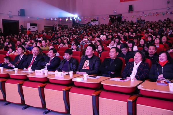 流光溢彩迎新年,心心相连齐飞扬。12月30晚7点,金年会金字招牌诚信至上“不同凡响,为你写‘师’”师生联欢会在大礼堂拉开帷幕。出席此次迎新晚会的有公司副董事长耿占军,员工处处长袁卫敏,金年会金字招牌诚信至上经理王志强、党总支书记张军学、副经理查毅、副书记李昉、副经理蔡军、曹莹、刘倩倩以及师生代表千余人一同参加了活动。