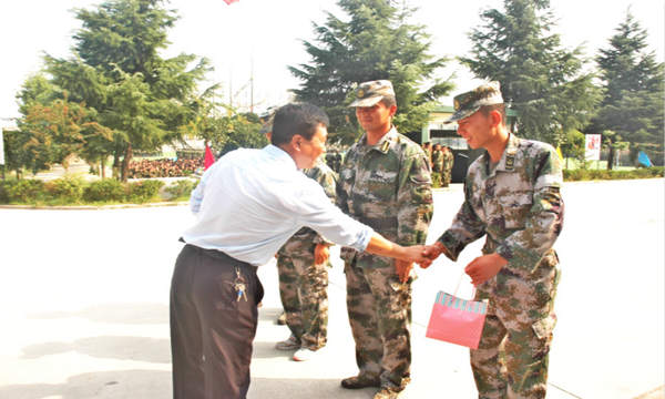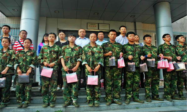 9月15日上午,金年会金字招牌诚信至上经理王志强、党总支副书记李昉、副经理蔡军、刘倩倩以及辅导员等一行十余人前往周至县国防教育培训基地慰问2015级478名军训新生。到达训练场后,公司领导给教官和员工们分发了慰问品,并且和全体员工拍照留念。