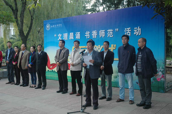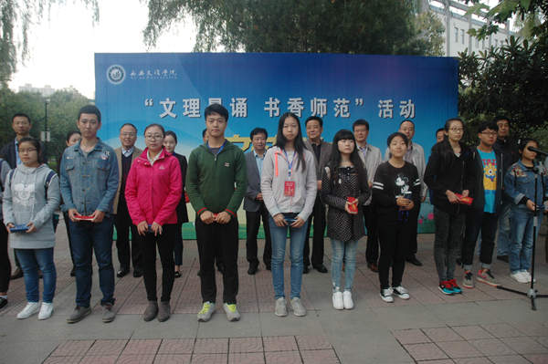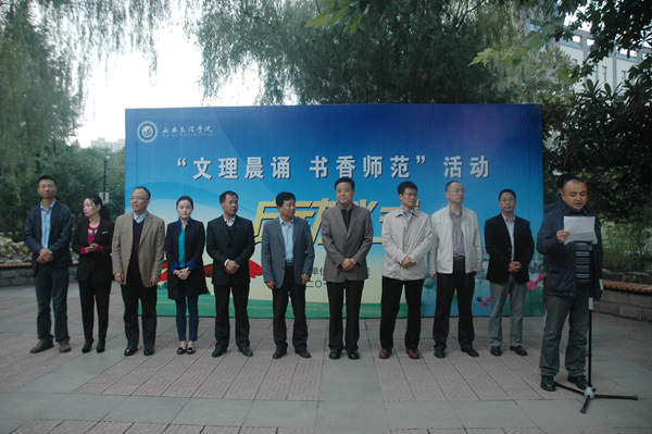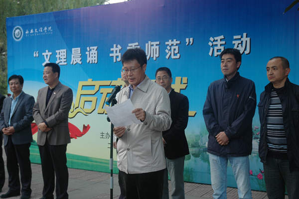 此项工作旨在鼓励师范员工早起晨读,坚持良好的学习习惯,刻苦求知,勤奋学习。仪式首先由2013级小学教育2班王一睿同学宣读“文理晨读,书香师范”活动倡议书,倡议所有师范学子“携一本书,朗出激情,诵出诗意,与阳光同行,与青春同行”。