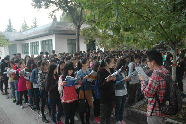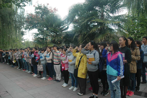 同学们集体诵读感恩教育口号,让集体晨读成为员工在大学一段珍贵的记忆。