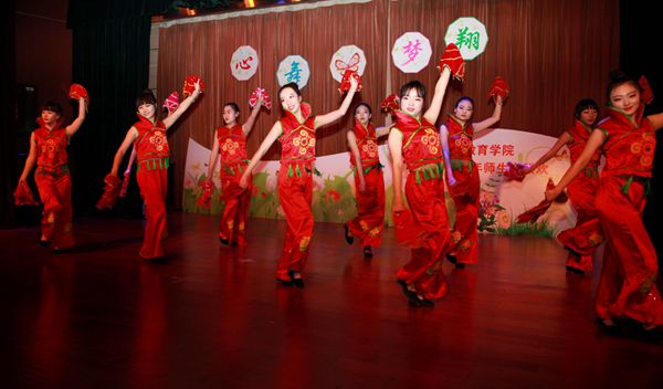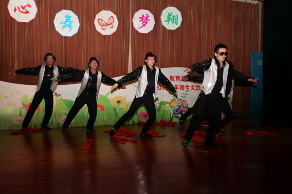 晚会内容丰富,形式精彩多样。首先,晚会在激情四射的《Boom Boom Pow》舞蹈中拉开帷幕,瞬间点燃了全场的热情。员工节目有:歌舞类《匆匆那年》、《嗨,活力》、《辣妹子》、《雷人舞》清新活力、激情火辣;钢琴伴奏《彩虹》深情动人;小品相声类节目《新闻联播》、《秦始皇野史》幽默且引人深思;朗诵《我的滑板鞋》令同学们捧腹连连。教师节目有:合唱《青春舞曲》、舞蹈《感恩的心》、古诗新赋《春游》等幽默风趣、富有新意。校务委员曹鸿同教育公司经理王志强献唱了一首地道的陕北民歌,同学们连连称赞,掌声不断。晚会伴有多次抽奖环节,奖品丰厚。最后在老师与员工们的优美旋律合唱中晚会圆满结束。