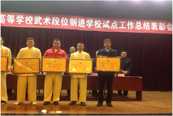 公司作为陕西省第一批考评试点公司,经过一年来的努力,武术段位考评工作已初见成效,并受到教育厅,体育局武术管理中心,陕西省武术协会的一致好评。本次表彰会上,公司被授予“中国武术段位制员工考评先进单位推动奖”,同时王志强教授,查毅、李柯副教授分别被授予“耕耘奖”和“优秀技理考评员”。来自省内的三十多所高等院校,一百多位体育部主任和骨干教师参加了会议。