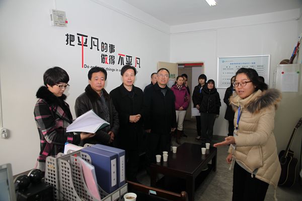 首先,由应用心理学专业杨磬羽,小学教育专业陈妍,体育教育专业李盛等六名同学对工作站的各项工作制度、内容及目标作了详细系统的讲解,在讲解过程中,韩权副董事长,王志强经理,张军学书记都对讲解内容进行点评和补充。接着,领导们对工作站指导老师及员工工作人员们提出很多建设性的意见,从学习角度,工作角度,心理角度分别进行精彩的评析和指导,并且表明了他们对工作站的殷切期望。并鼓励工作人员们,要切实开展工作站的工作活动项目,过程也许艰难,但是“把平凡的事努力坚持做下去,就是不平凡。”最后,韩权董事长和王志强经理共同完成此次揭牌仪式。