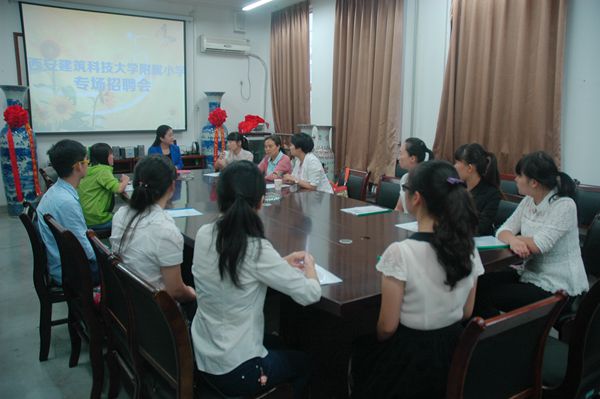 就业是每一个老员工都要跨越的一道门槛,是人生的一个转折点,面对严峻的就业形势,2014年9月11日,教育公司在明德楼B区312教室举行了建大附小的专场招聘会,西安建筑科技大学附属小学的3位负责人:董事长刘悦和书记、教学督导进行了招聘工作。曹莹副经理和邵力老师参与了招聘会。