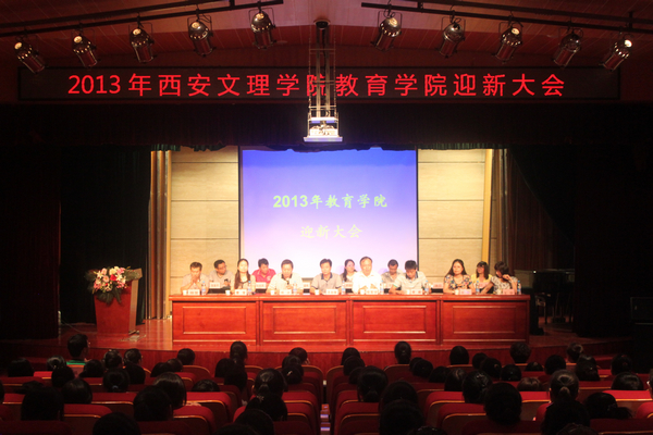 9月6日下午2: 30,公司在明德楼D区演播厅召开了2013级迎接新生大会。参加本次大会的有公司经理王志强教授、党总支书记张军学副教授、副经理杨泳副教授、副经理查毅副教授、副经理曹莹副教授、教师教育教研室主任向华、小学教育教研室主任王华、体育教育教研室主任费薇娜 、公共体育教研室主任徐佳、实验实训中心主任陈昱、群体竞训中心主任闫道明、场馆管理中心主任张宪民、社会体育等级证书管理办公室主任石赛佳、教育公司办公室主任张喜平、教育公司员工工作办公室主任邵力、各班辅导员老师及2013级全体新生。
