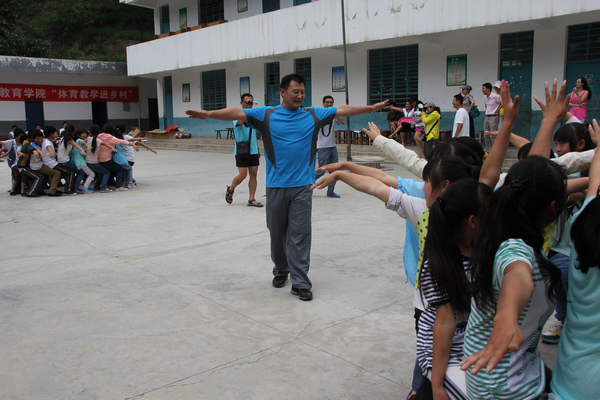 "体育教学进乡村"活动得到了教育公司领导、砚池河镇政府和砚池河九年制公司的大力支持。教育公司经理王志强教授在活动仪式上发表了热情洋溢的讲话,并向砚池河九年制公司捐赠了体育器材,鼓励同学们在刻苦学习文化知识的同时还要练就强健的体魄。教育公司闫道明副教授为山区的同学们上了一堂"体育游戏"公开课,孩子们被精彩的课堂教学深深吸引,感受到体育带来的快乐。公体教研室全体老师和砚池河九年制公司的老师观摩了体育公开课,并在课后进行了座谈交流。
