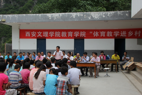 6月29日--30日,教育公司领导班子与公共体育教研室全体教师来到大山深处的商洛市砚池河镇,与砚池河九年制公司开展了"体育教学进乡村"活动,并对结对帮扶的贫困生进行了家访。