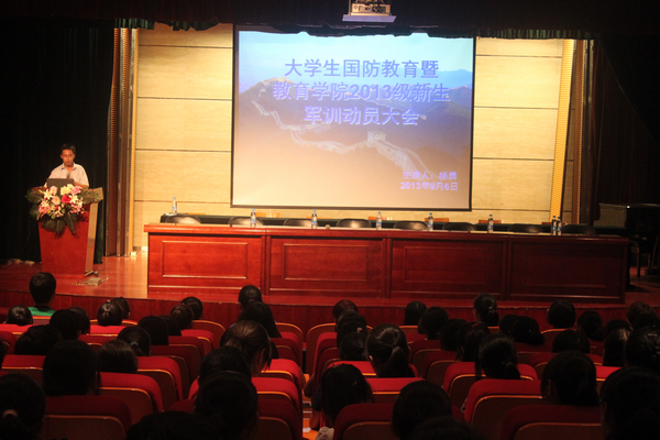 9月6日中午2:30,公司在明德楼D区演播厅展开了2013级新生国防教育暨大会。此次大会由辅导员杨勇老师做了详细的讲解,重点强调了老员工要懂法、知法并且学会用法律知识维护自己的人生安全。首先,杨老师通过最近国防时政时事给同学们进行了具体的讲述,并且让员工对该事件谈了自己的看法。随后老师对中西方的国防事业也进行了一些阐述,并对参加军训的2013级新生们提出了一些要求,希望员工充分发扬吃苦耐劳的精神,正真明白军训的意义,发扬军队艰苦奋斗、要团结合作的优良传统,要以饱满的热情投入到训练中去,要严守纪律,圆满完成训练任务;同时军训也是一个提高个人组织纪律性的过程,希望同学们严格要求自己,严格遵守训练规定,要一切行动听指挥,为投入祖国建设打下一个坚实的基础。
