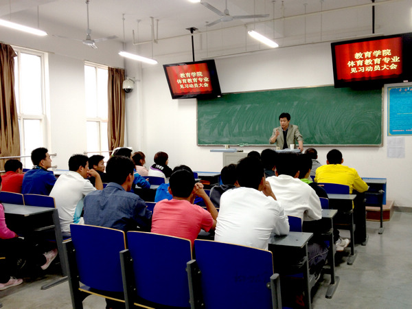 2013年4月8日,下午16:00教育公司体育教育专业员工参加了公司组织的见习动员大会。此次会议由党总支副书记张军学主持。参加本次见习大会的领导有教育公司经理王志强、副经理查毅、带队教师以及体育教育专业的员工31人。