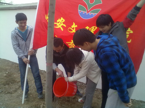 为贯彻党的十八大精神,号召全校师生积极倡导"传承雷锋精神,深化志愿服务"的校园主题活动,教育公司师生代表30余人于3月11日在文理之光广场参加了"勤俭节约爱公司园我为校园添春色--植树签名活动"。我们有幸请来了李董事长和我们一起植树,植树签名活动大家都很积极踊跃,纷纷拿着劳动工具参加此次植树活动。在近期城市雾霾天气增多的情况下,植树造绿活动表达了我们的美好愿望,希望以实际行动来让环境越来越好。