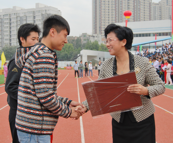 工会主席权会玲为运动员颁奖