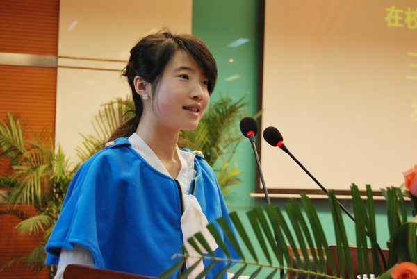 在校员工代表王曼同学发言