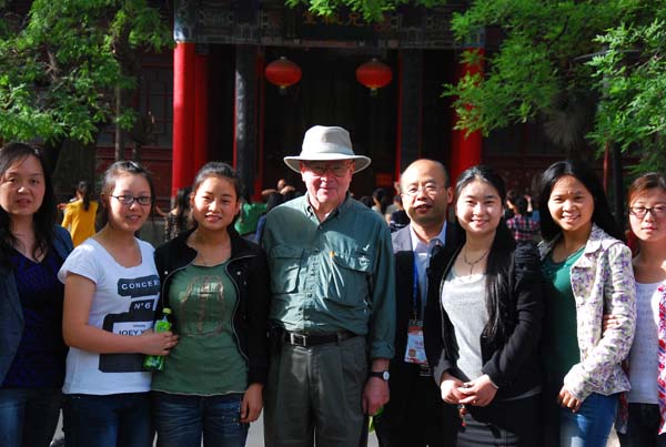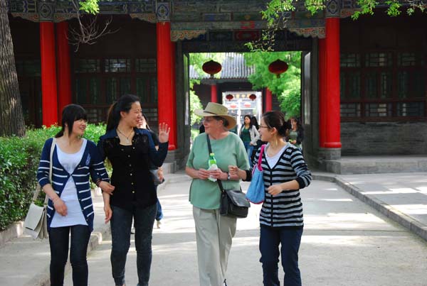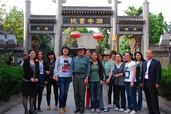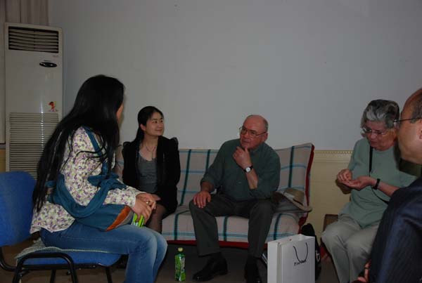 教育公司领导、老师向大师介绍了关中书院的历史,小学教育专业的学科专业特色,办学模式,在交流中他热心的询问公司员工的学习、生活状况及日常活动,观看了公司员工太极拳表演和团体跳绳的体育活动.在和老师、员工的愉快交流后我们合影留念,并向大师赠送了礼品和纪念册,希望这份异国友谊传承下去。