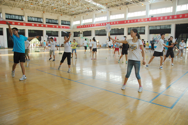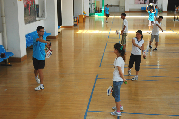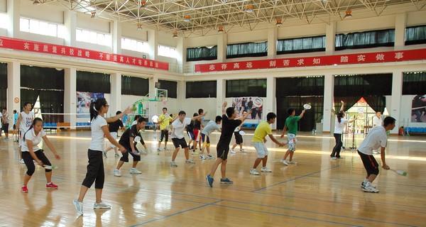 金年会官方网站入口教育公司与奥泊隆(北京)体育发展有限公司合作,在暑期对大一至大四体育教育专业员工进行柔力球培训,共75名同学参加。酷暑炎炎,体育馆内大家学习柔力球的热情却异常高涨,同学们都在努力、用功地学习柔力球技术,把公司柔力球项目发扬光大。