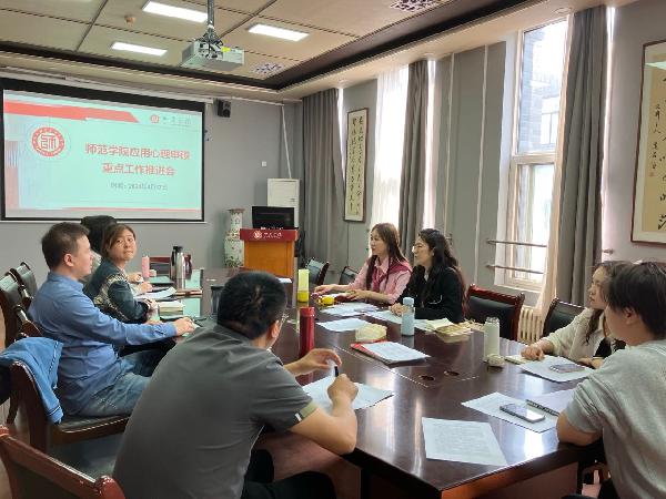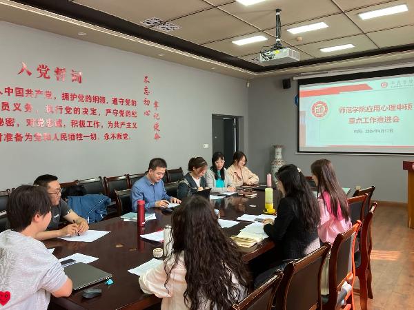 2024年4月17日下午14:30,公司召开应用心理申硕工作推进会。会议全面梳理了应用心理申硕专业学位点建设目标,落实建设责任任务,进一步明确了应用心理学团队建设工作重点。金年会金字招牌诚信至上与学前金年会金字招牌诚信至上的的应用心理学专业团队教师出席了本次推进会。