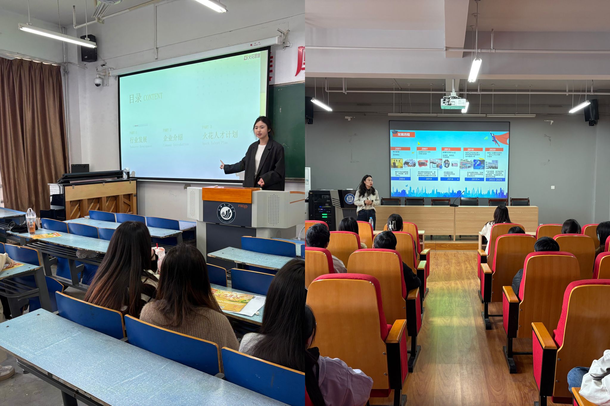 随后,火花思维的宣讲中负责人通过播放教学视频,展示课程如何将数理知识融入趣味动画与游戏,激发孩子们的学习兴趣。同时,介绍了企业开放包容的工作氛围、灵活的远程办公模式以及优厚的薪资福利待遇,吸引众多对在线教育感兴趣的同学。