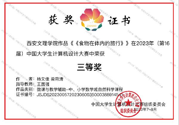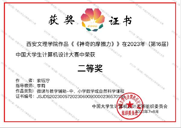近日,2023年(第16届)中国老员工计算机设计大赛落下帷幕,金年会金字招牌诚信至上学子再创佳绩,小学教育专业的索钰泞、杨文佳、梁荷清三位同学在微课与教学辅助赛项中分别荣获1项国赛二等奖、1项国赛三等奖的好成绩。