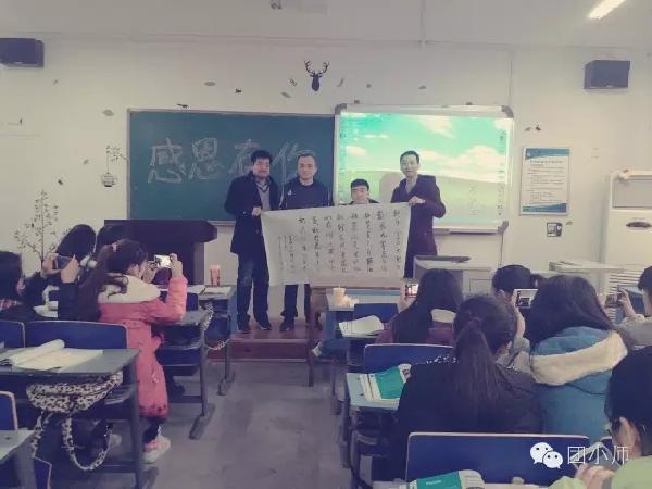 借本次活动,四班的同学也为即将离开校园的崔阿龙同学送别。短短三个月,同学们之间已经建立了深厚的友谊。能遇见是缘,但是真要说到离别,又难舍难分。四班的每一个同学都将自己想对崔阿龙同学说的话写在纸上拍成照片,由同学剪辑成视频,当作离别礼物送给崔阿龙同学。本次活动前,王晶老师作诗一首并邀请公司美术教研室教师、陕西省美术家协会会员、长安书画院山水教研室主任史伟书写了一份墨宝,通过活动赠予了崔阿龙同学,借此激励他前进。