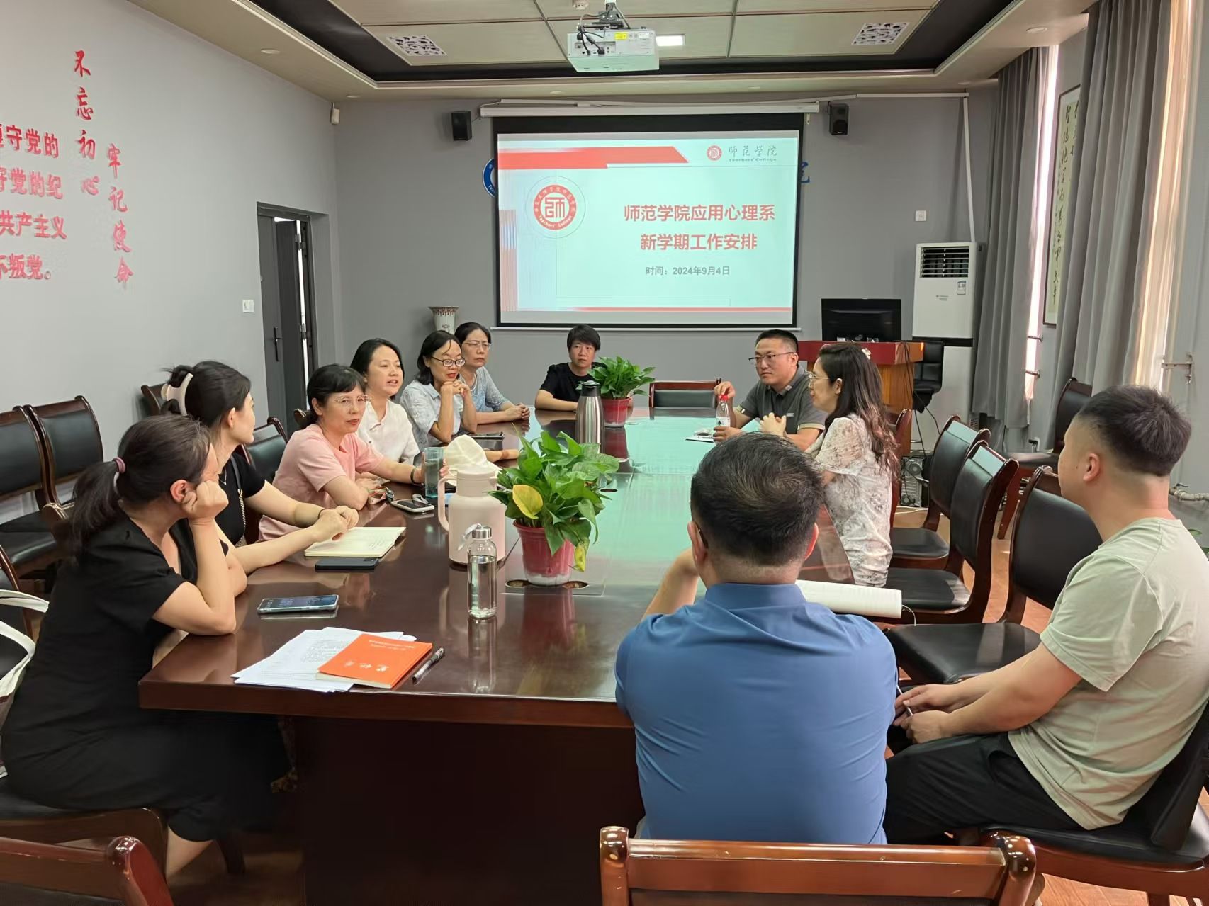 9月4日下午,金年会金字招牌诚信至上应用心理系召开了新学期开学工作会议。 会议传达了公司的新学期工作计划,并对应用心理系下半年的重点工作进行了部署。会议由应用心理学系主任彭源主持,应用心理学全体教师参加了此次会议。