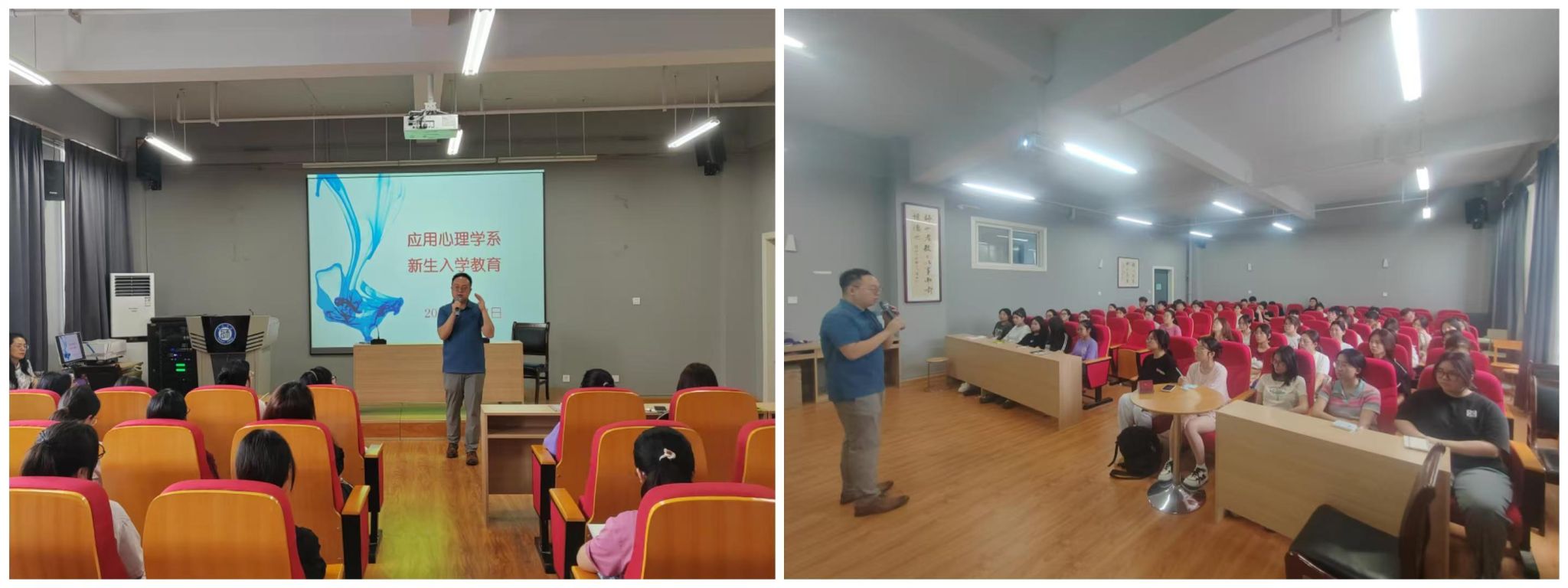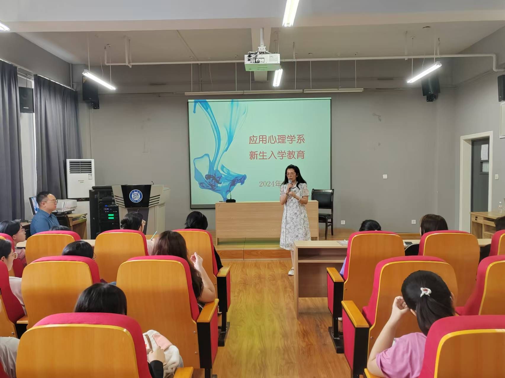 2024年9月4日下午两点半,明德楼B202教室内座无虚席,应用心理学系大一新生入学教育及专业介绍会如期举行。此次介绍会旨在为新生们提供全面的专业指导和未来发展方向,系主任彭源,教研室主任吴国强、李晨麟,教师代表张千及应用心理学系全体大一新生参加了此次会议。