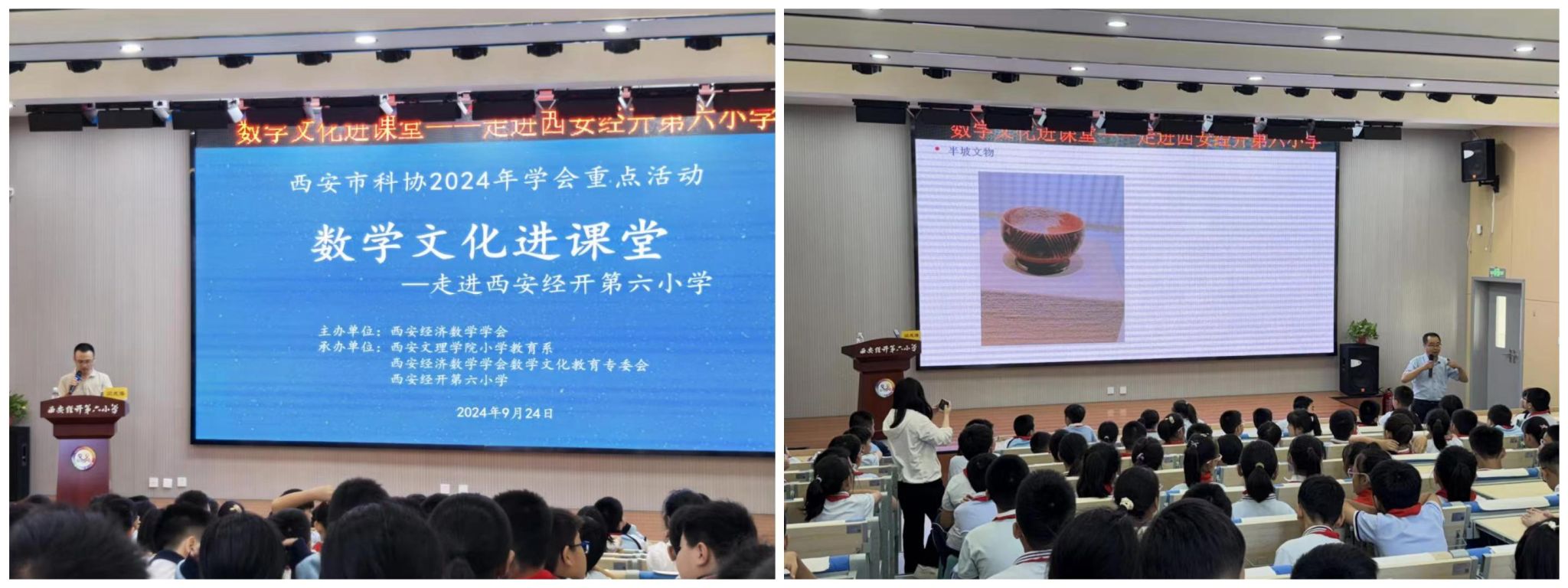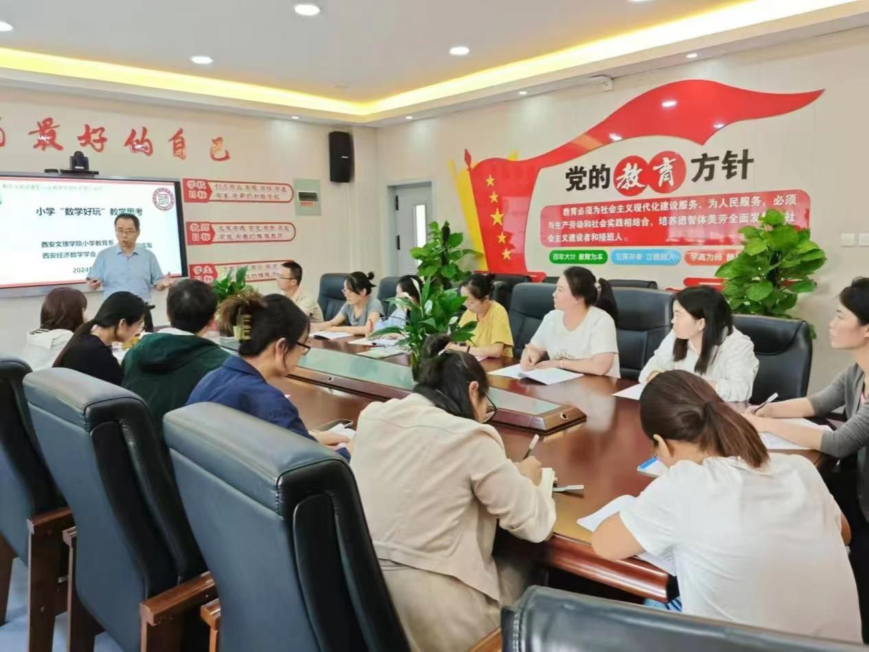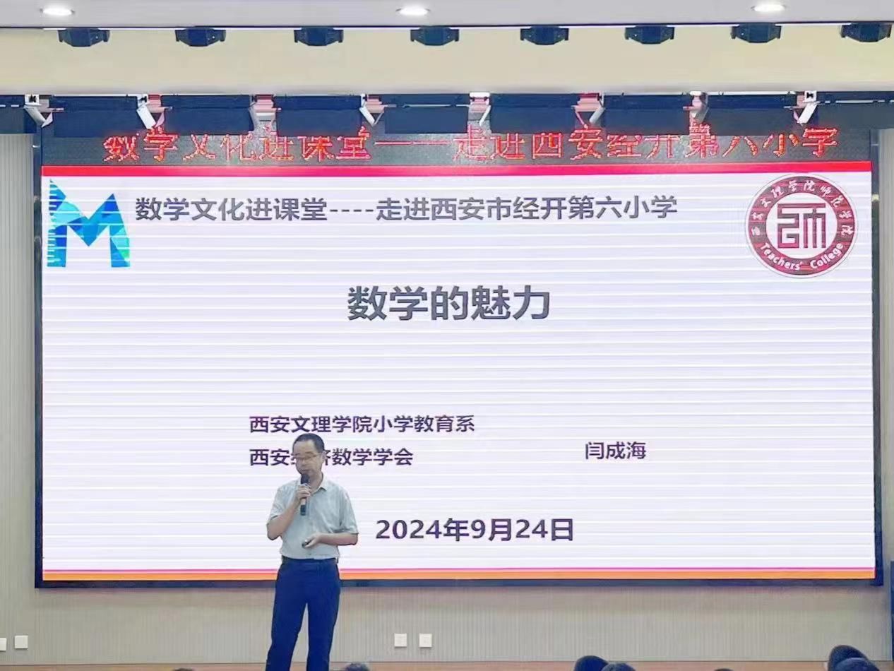 9月24日下午,由西安经济数学学会主办,金年会官方网站入口小学教育系、西安经济数学学会数学文化教育专委会与西安经开第六小学承办,西安市科协2024年学会重点活动“数学文化进课堂”在西安经开第六小学举行。