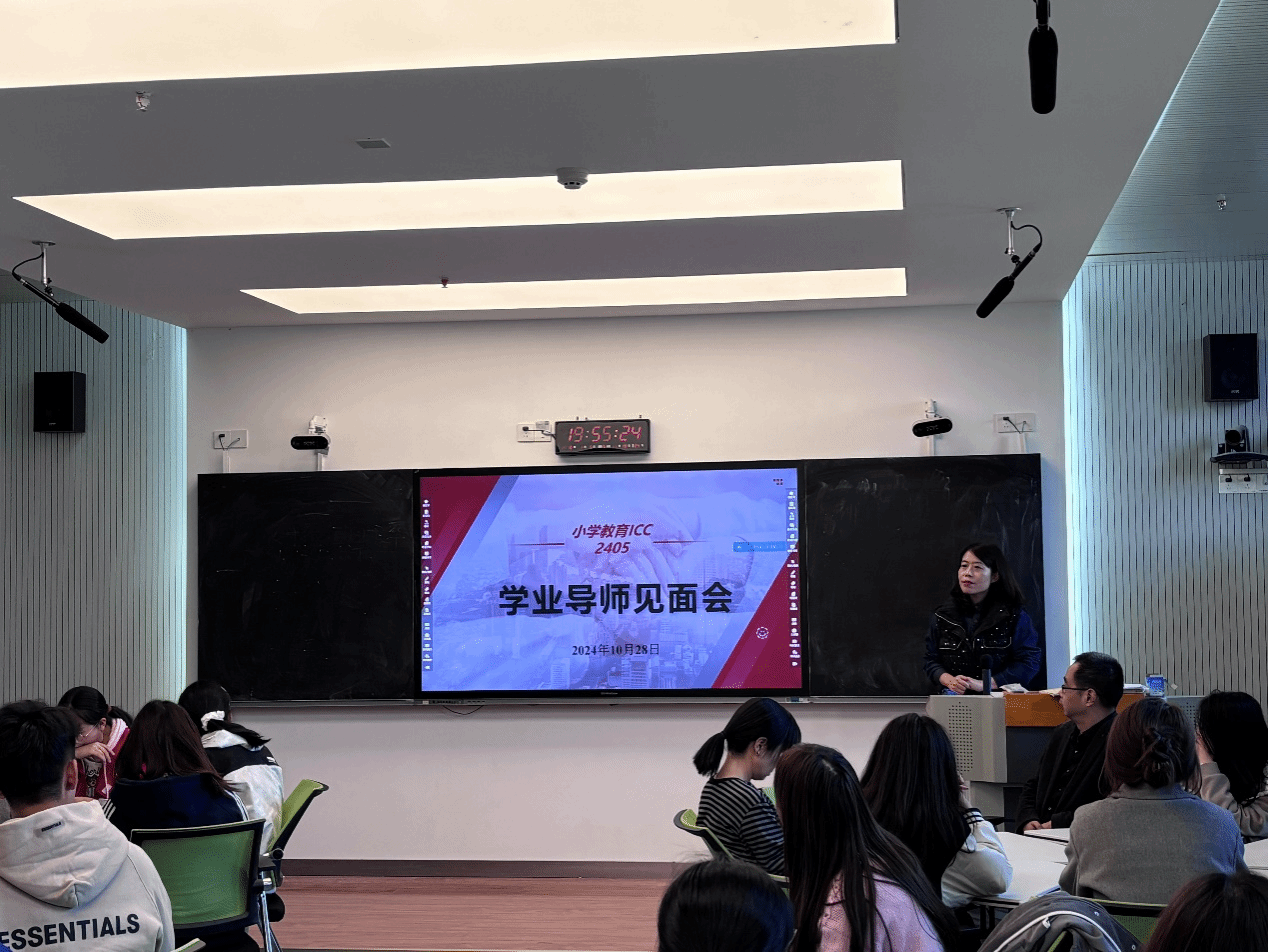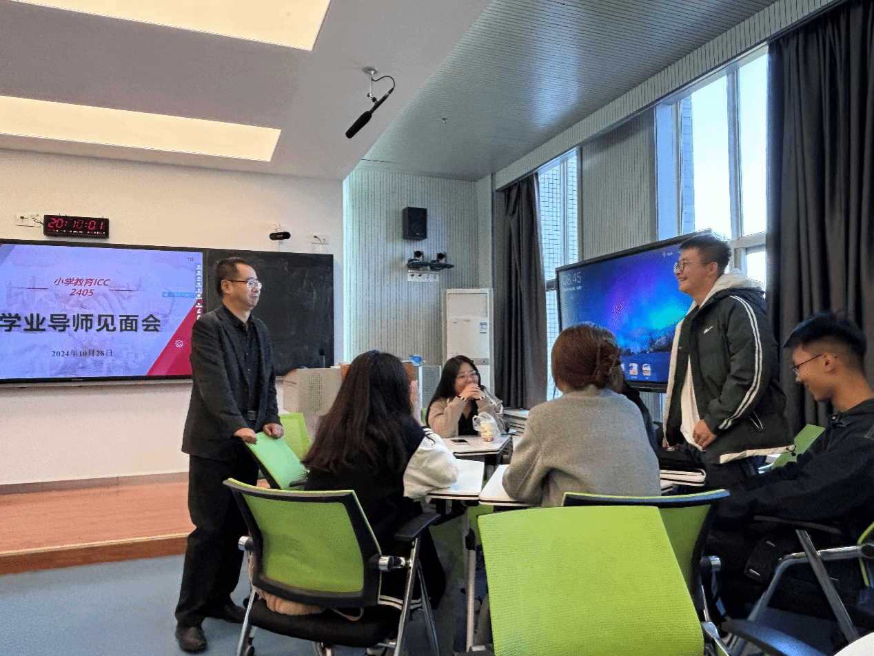 随后,小学教育ICC专业辅导员陈渝老师介绍了学业导师的具体分组情况,要求员工主动加强与学业导师的联系,明确未来学习和发展方向,五位学业导师与同学们开展了热烈的交流互动。