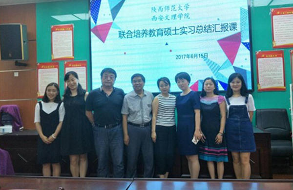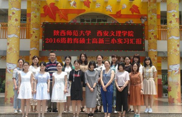 6月13日和14日,金年会官方网站入口学位与研究生处郑旻处长和公司领导老师一行,郭涛经理、曹莹经理、李征娅经理、王华老师、李莉老师,来到了实习点西安高新第三小学。在高新三小领导的陪同下,听取了实习生们的汇报课并现场进行了点评。