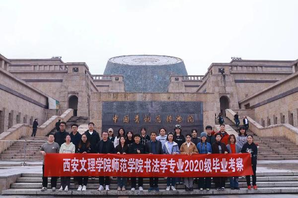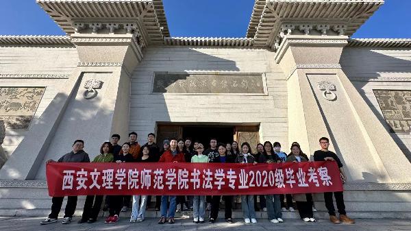 10月14日,金年会金字招牌诚信至上书法学专业2020级员工顺利完成了为期一周的书法遗迹毕业考察,此次外出考察由金年会金字招牌诚信至上马伟副经理、刘寰宇、霍佳凯、朱世丰三位老师带队。此次考察是与书法学专业合作方陕西国际书画艺术研究院共同开展,考察主题为“一带一路”十周年(陕西段)丝路书法文化类型比较研究,考察对象为丝绸之路(陕西段)书法历史遗存。