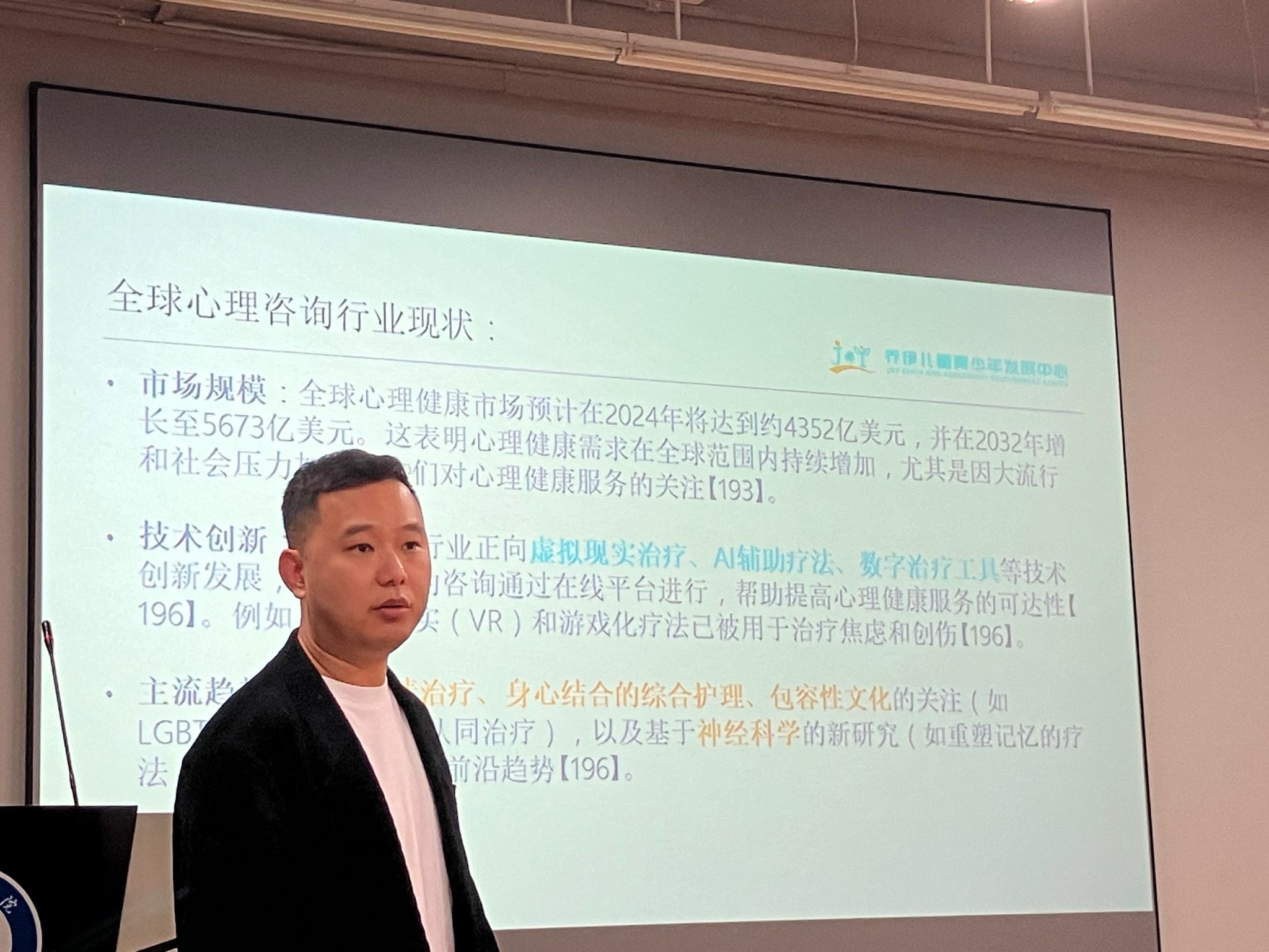 张鑫老师围绕“过有意义的人生”这一主题,结合当前中国心理咨询行业的现状与发展,分享了对实习生的要求和培养方案。他指出,员工在实习过程中应努力提升专业技能,并树立良好的工作和学习态度。