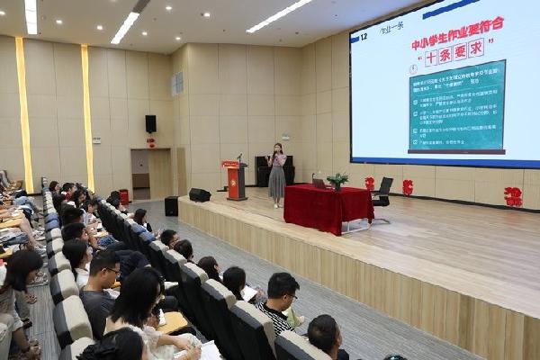陶琳分别从“双减”政策背景解读、传统作业观反思、新时代作业观的重塑、作业设计要点及作业案例分析五个方面,对作业从研究到实践层次的成果、经验进行了详细的讲解。此次培训中,精彩的案例分析,精辟的专业讲解,让老师们得到了知识上的沉淀、理论上的引领、实践上的指导,老师们在会后进行了热烈的互动。