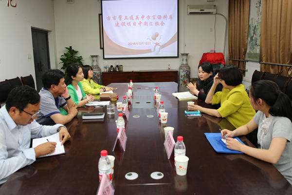 会议由省教育厅语工处副处长刘白燕主持。首先,副经理曹莹对之前的建设研究工作向大家做了详细的说明,课题组在制定了规划方案之后积极同语文出版社协商,在前期工作准备好后,如期举行了项目启动会。项目实施阶段首先由中科院车浩教授制定录音文本,接着邵力老师遴选出600名员工进行对比音录音,在录音前车浩教授对同学们进行了培训并选取了两名三原同学录制了示范音。工作总结完后,曹莹副经理就当前课题实施过程中遇到的难点进行了梳理,并与大家进行了讨论。