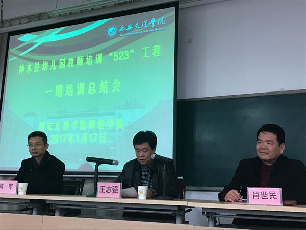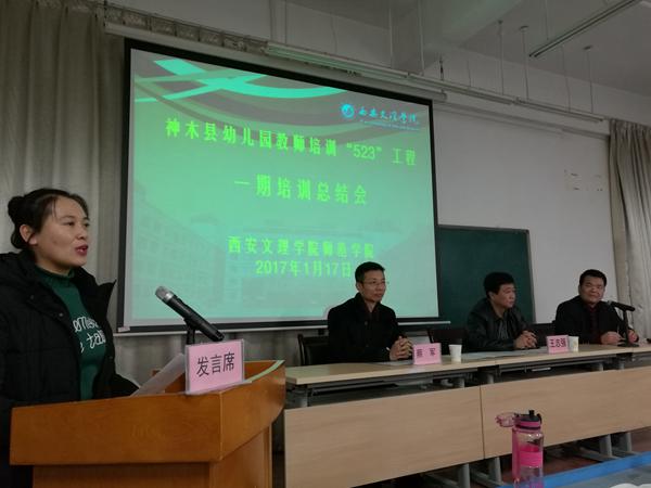 2017年1月17日下午,神木县幼儿园教师培训“523”工程一级一期培训总结会在公司召开。参加总结会的有金年会金字招牌诚信至上经理王志强教授、副经理蔡军博士,金年会金字招牌诚信至上办公室、学工办工作人员4名,以及参加本次培训的学员100名。会议由公司统筹城乡发展研究中心主任肖世民主持。