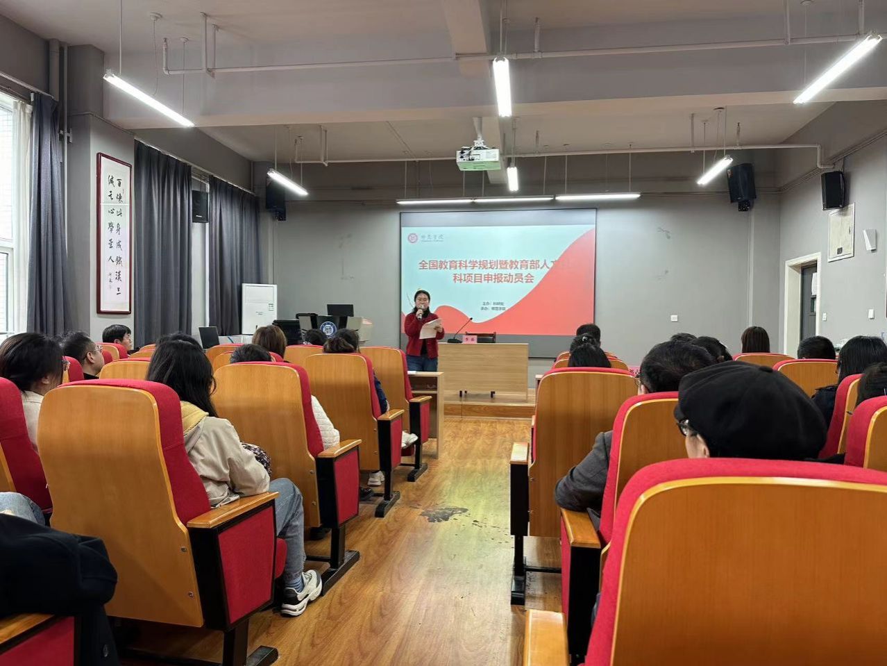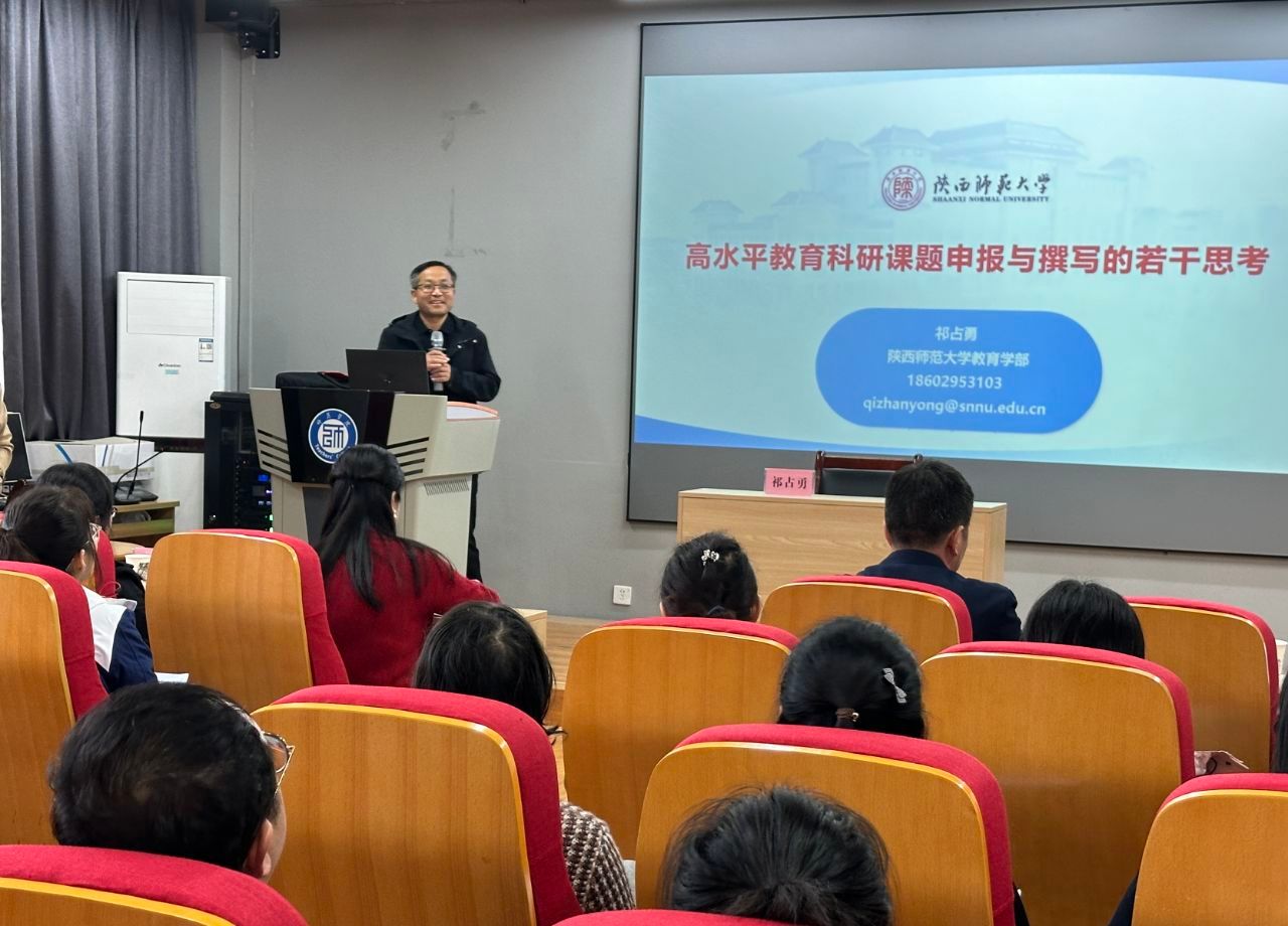 10月30日下午,2025年度全国教育科学规划暨教育部人文社科项目申报动员会在公司举行。科研处常务副处长杨菊香、副处长李治及相关公司领导、教师参会,会议由金年会金字招牌诚信至上经理曹莹主持。会议特邀陕西师范大学祁占勇教授就高水平教育类课题申报的关键要点举办讲座。