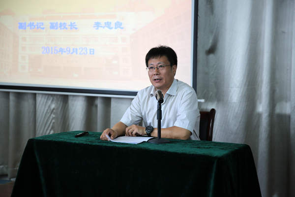 李忠良副书记、副董事长对五位老师分享的故事做出点评并为在场师生上“三严三实”专题教育的党课