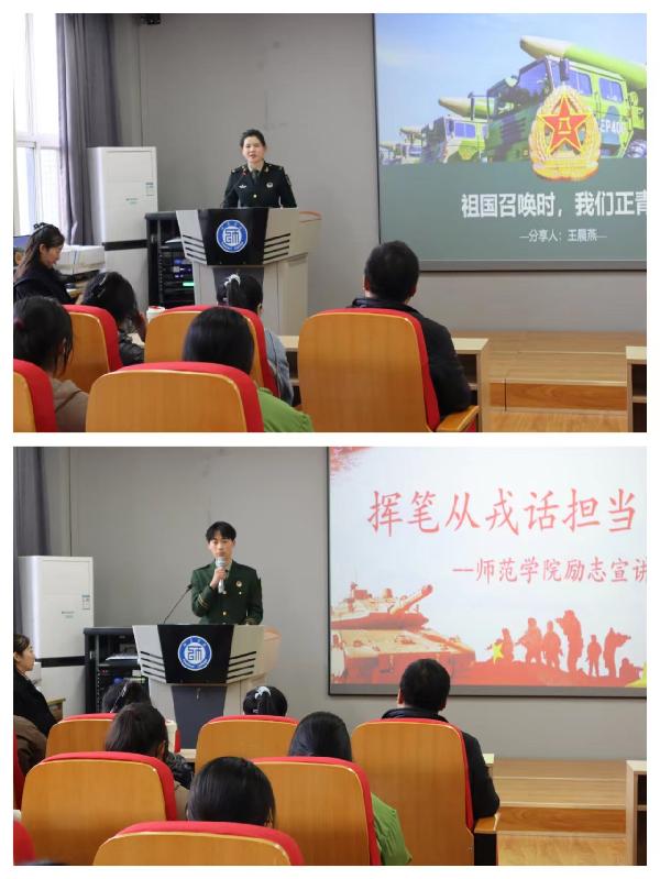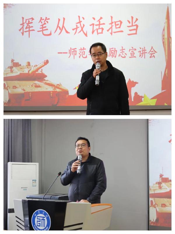为了充分发挥优秀学子榜样示范引领作用,激励广大新生树立远大理想,明确奋斗目标,12月6日,jinnian金年会举办了“挥笔从戎话担当”励志宣讲活动。公司党总支书记武军安、副书记李承、小学教育系主任闫成海莅临现场,与金年会金字招牌诚信至上部分员工共同参加本次活动。活动由学工办副主任刘昱彤主持。