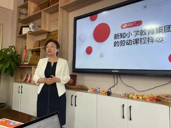 新知刘岚董事长分享了新知小学劳动课程的样态,有综合实践课程、跨学科课、社团课程,在活动中也有劳动,如入学礼、自理能力大赛、班级文化建设。新知劳动课程是以融通的的方式实现的,劳动课程体系完善。